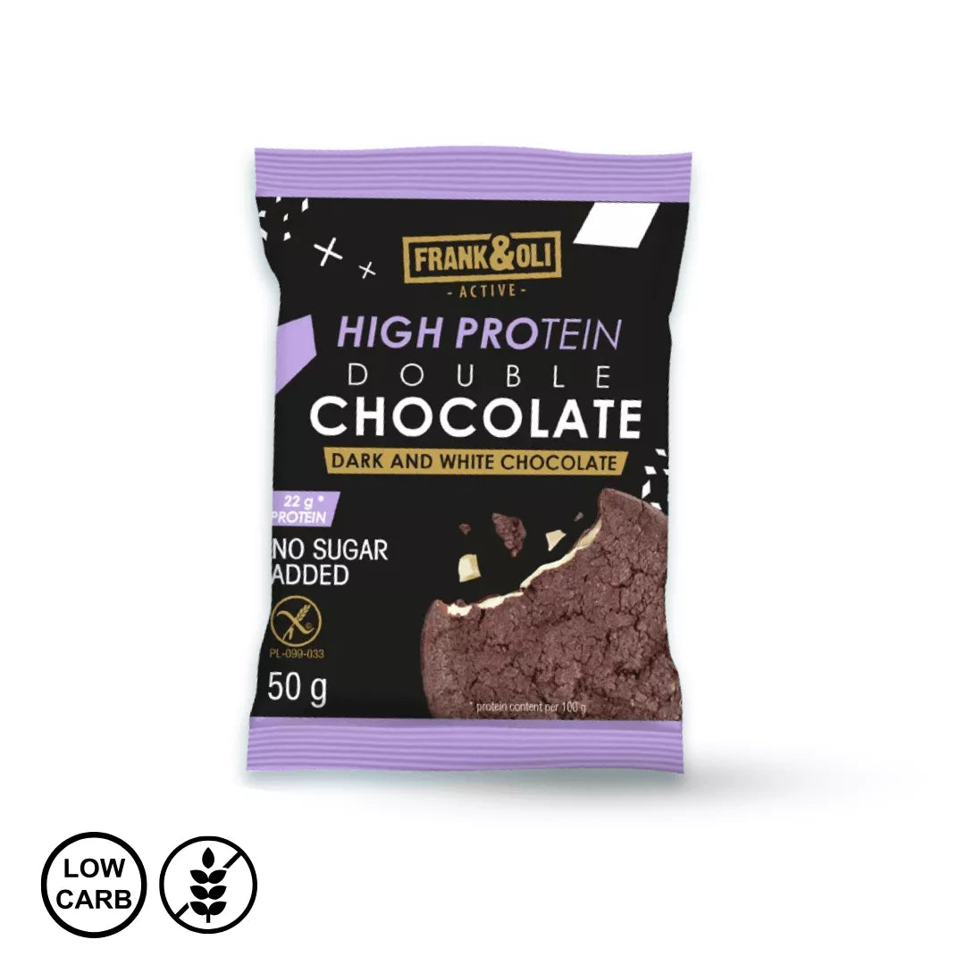 Piškot združuje temno in belo čokolado v mehkem, nasitnem piškotu z visoko vsebnostjo beljakovin in vlaknin. Intenzivna kakavova nota temne čokolade se prepleta z nežno sladkobo bele – rezultat pa je poln, zaokrožen okus brez dodanega sladkorja.