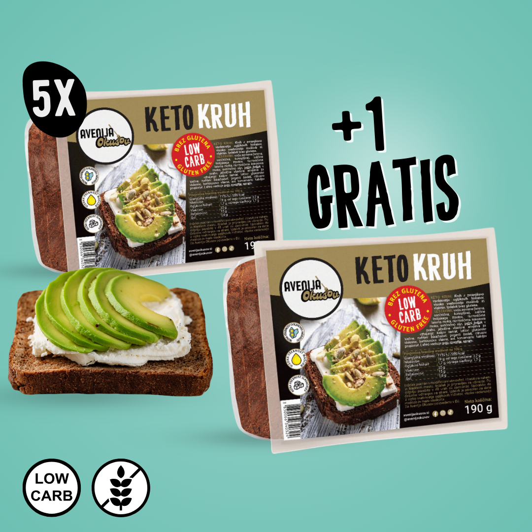 Ob nakupu 5 paketkov KETO rezanega kruha 190 g vam podarimo enega GRATIS.